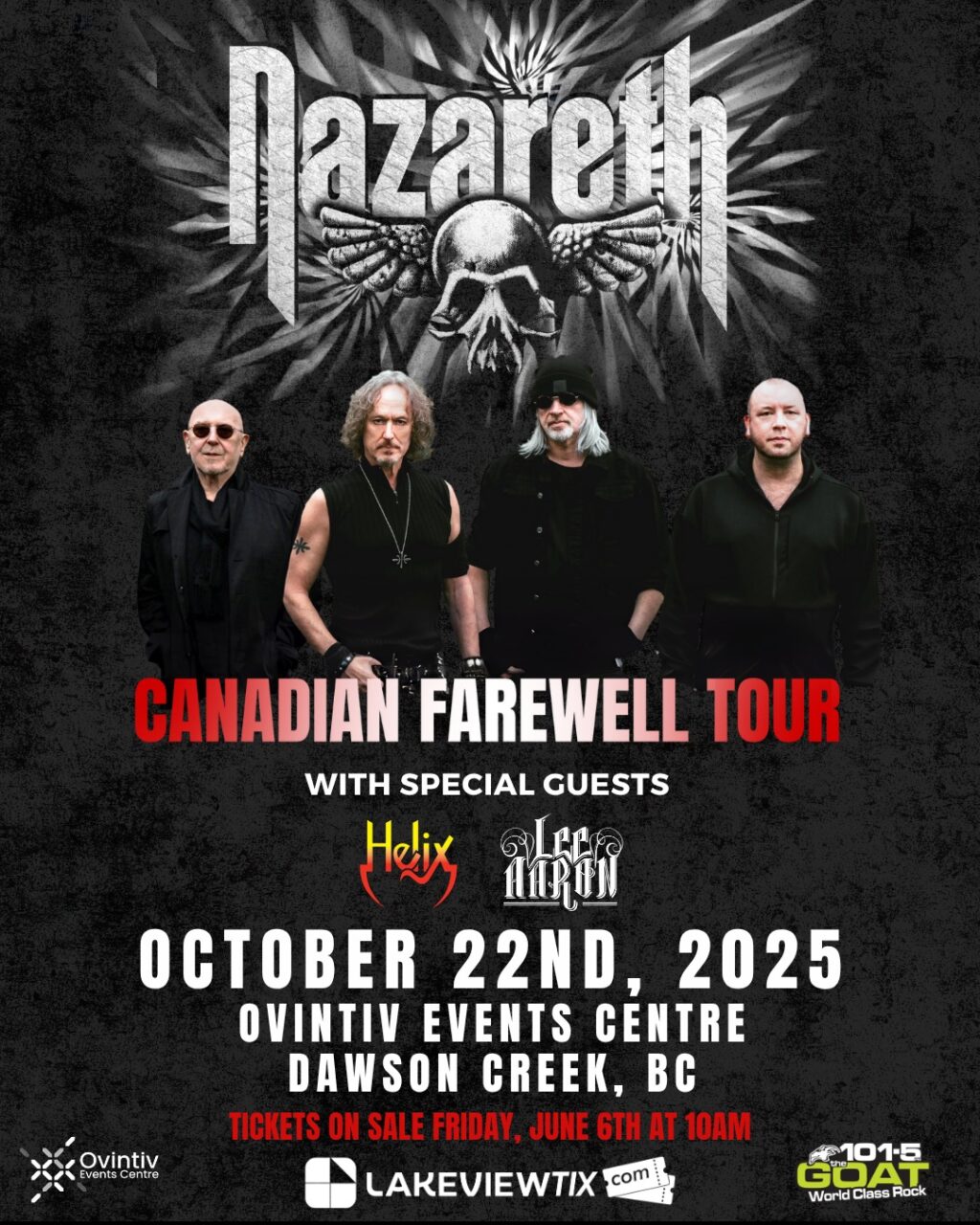 - October 22, 2025 - Ovintiv Events Centre in Dawson Creek, BC with Nazareth